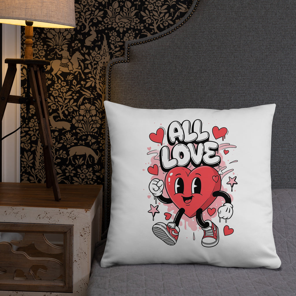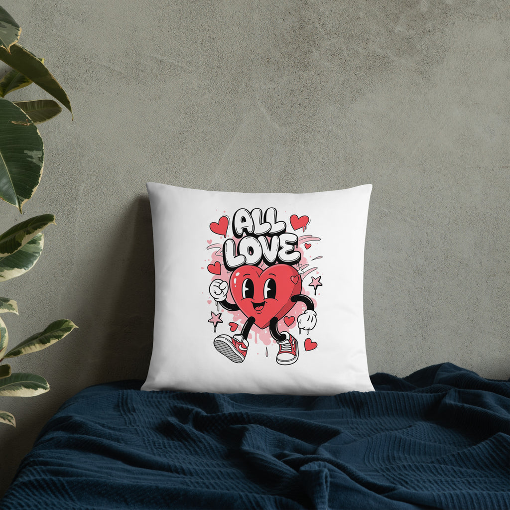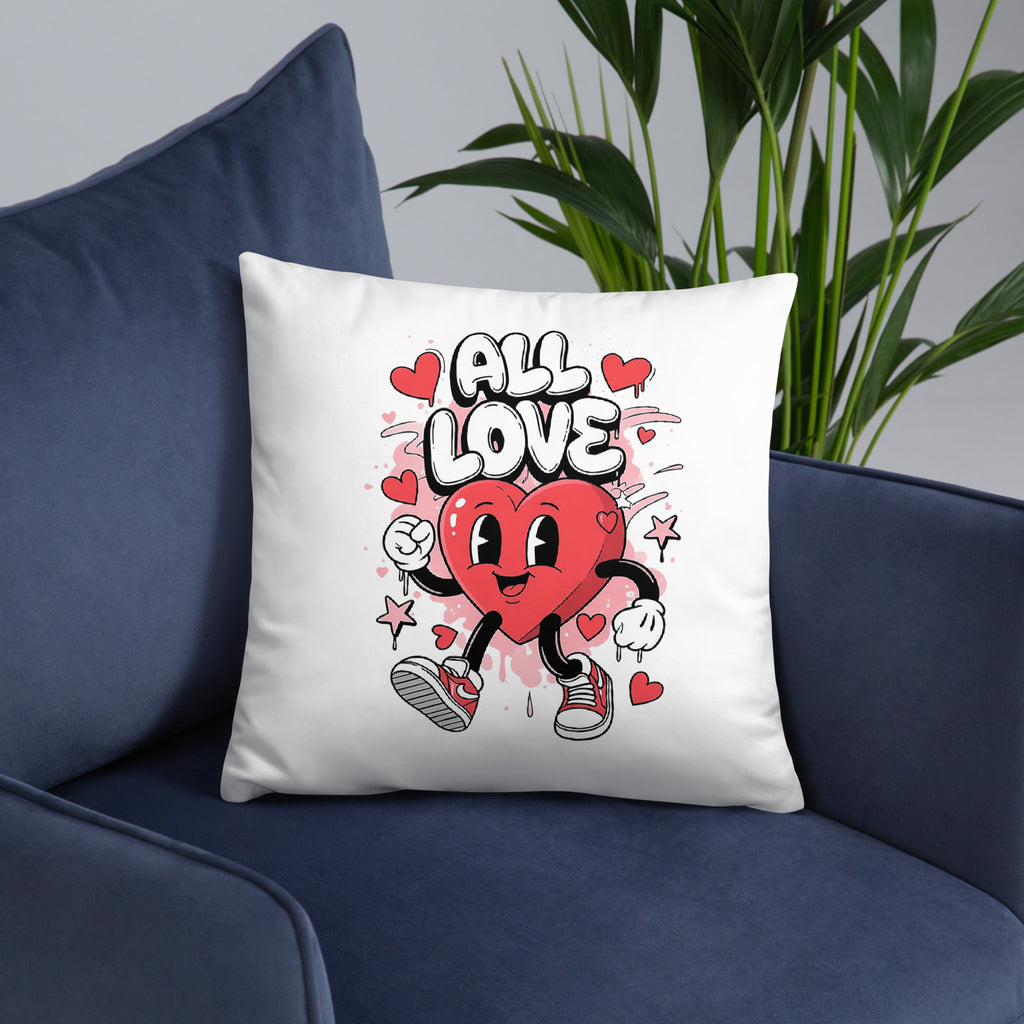 Bring color and positivity into your space with the All Love Graffiti Pillow. Featuring a playful heart character and dripping graffiti accents, this pillow adds a modern street-art vibe to any room.