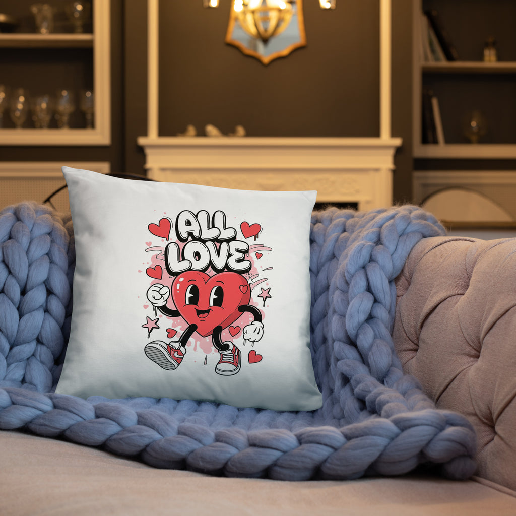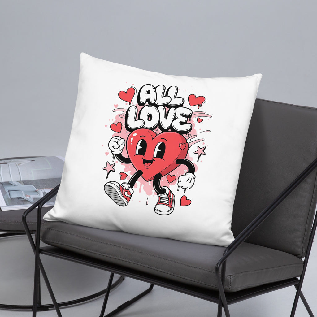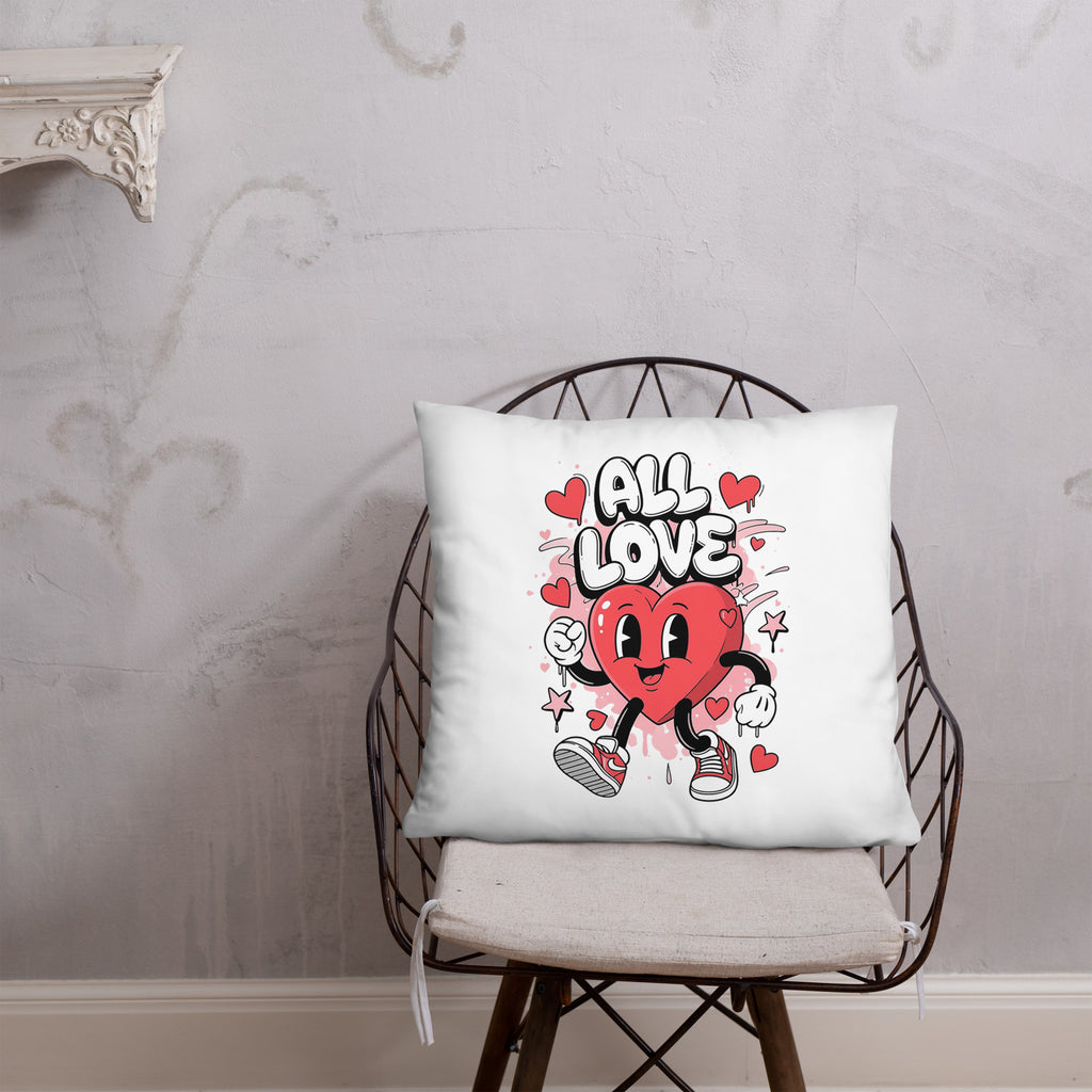 Bring color and positivity into your space with the All Love Graffiti Pillow. Featuring a playful heart character and dripping graffiti accents, this pillow adds a modern street-art vibe to any room.